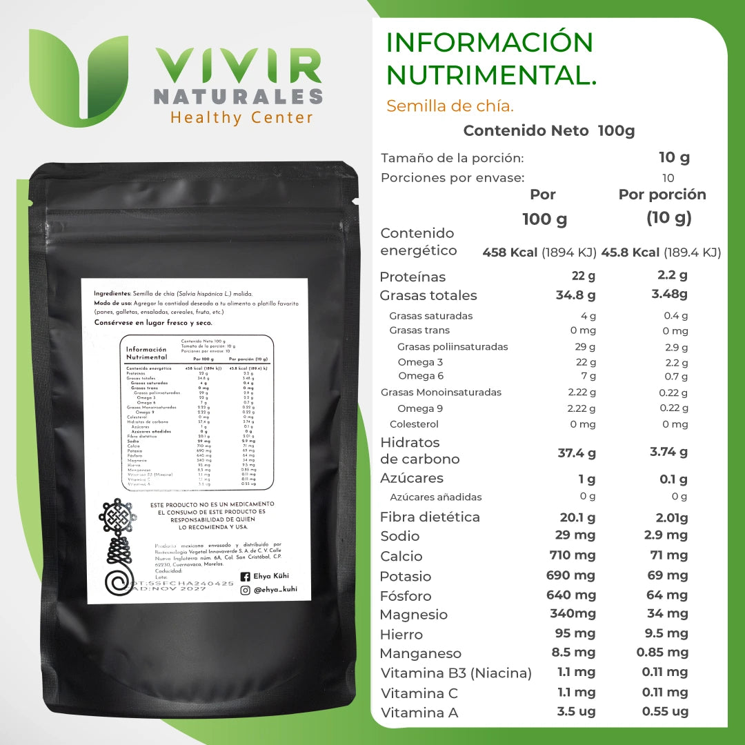 - Las semillas de chía contienen grandes cantidades de vitaminas del grupo B y calcio.