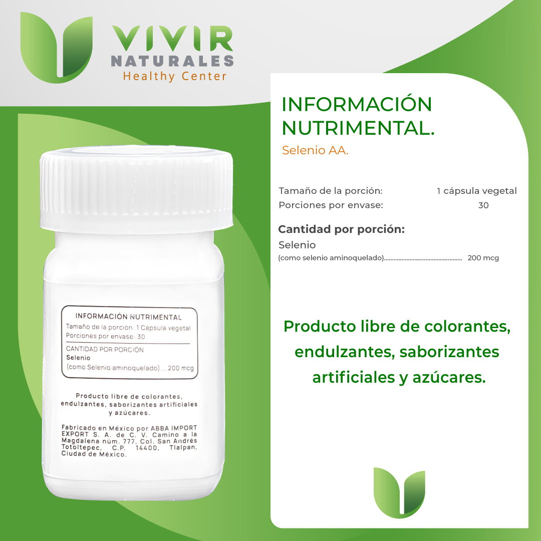 SELENIO AA 200mcg de 30 cápsulas marca Sáyensi.
