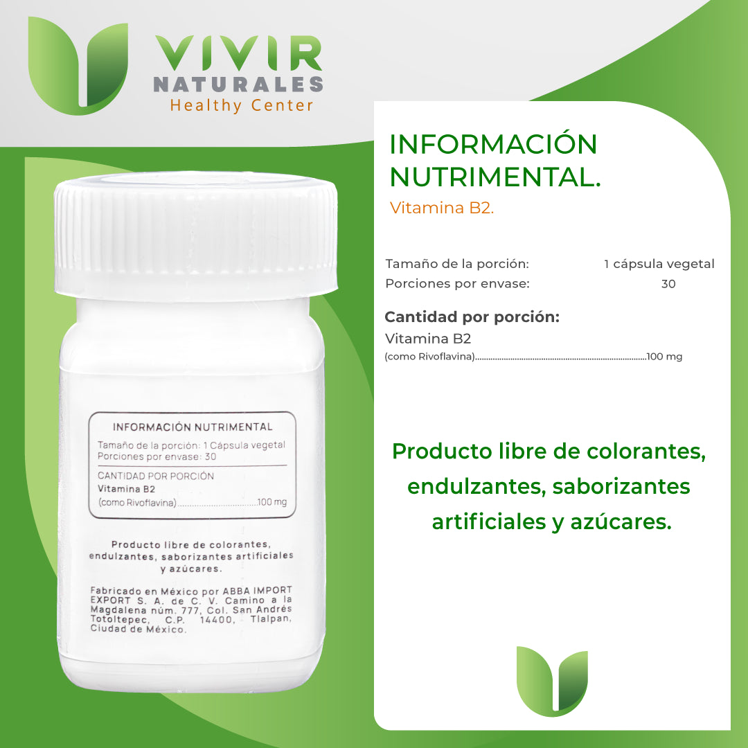 Vitamina B2 100mg de 30 cápsulas marca Sáyensi.